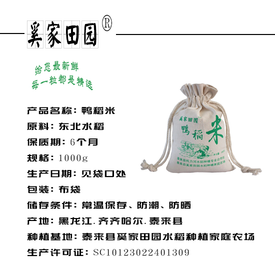 奚家田园富硒鸭稻米2斤布袋装