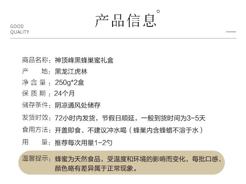 东北黑蜂巢蜜礼盒 500g/盒