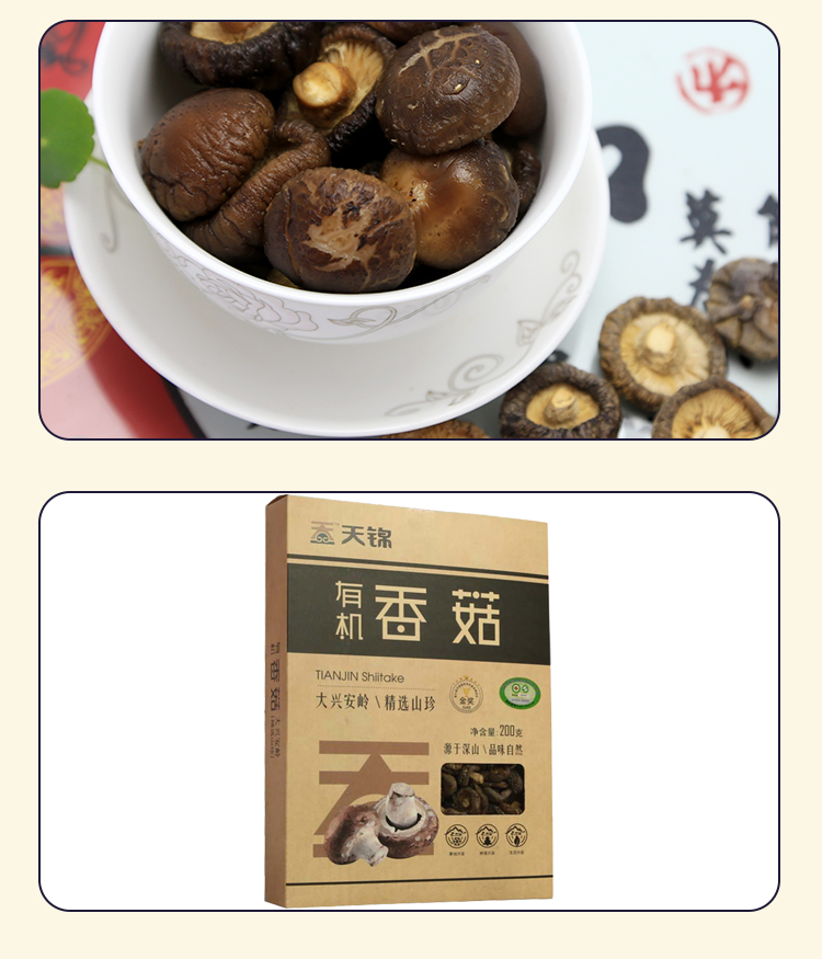 天锦 有机香菇200g 东北剪根 营养菌菇土特产