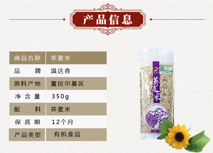 温达香 荞麦米350g 东北粗粮胚芽米杂粮 手工挑选 无熏制大米