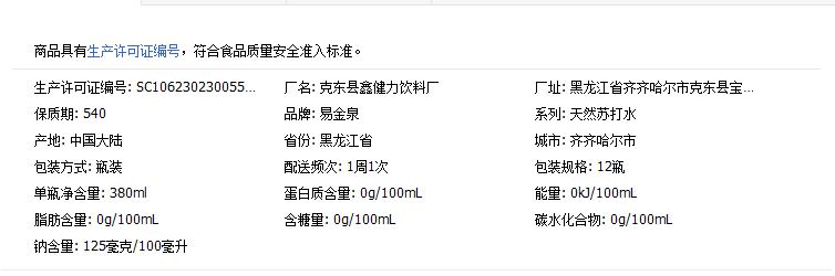 易金泉天然苏打水