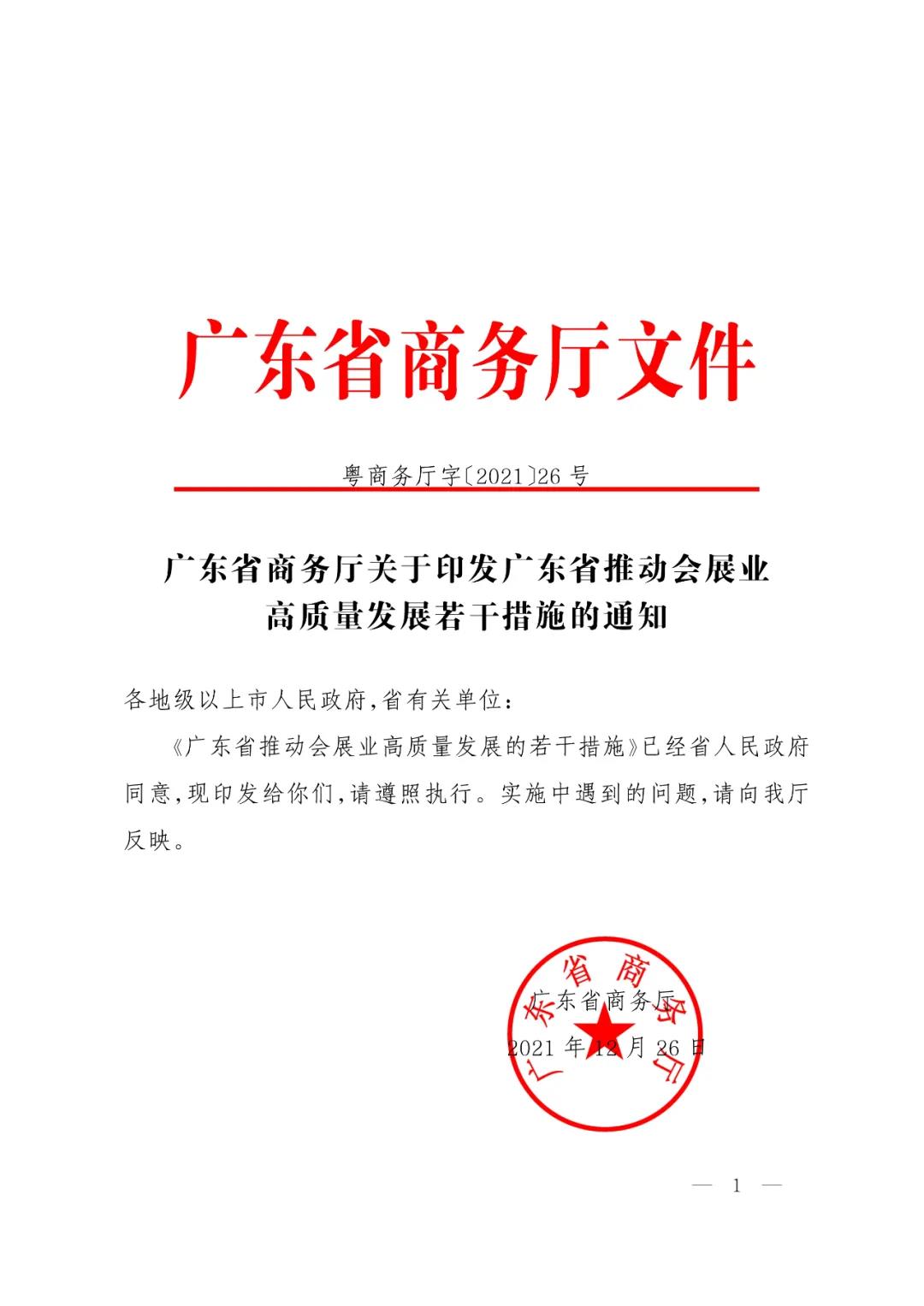 广东省商务厅关于印发广东省推动会展业高质量发展若干措施的通知